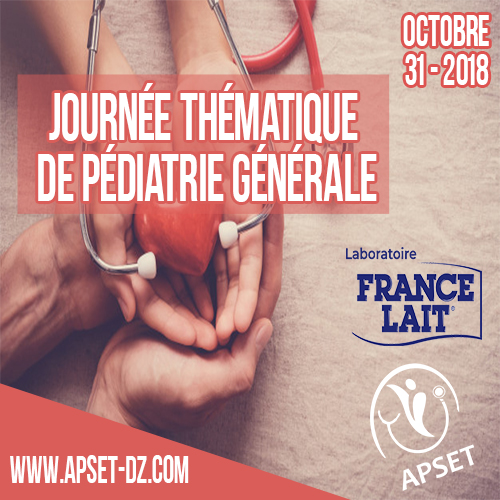 Le 31 octobre 2018 Journée thématique de pédiatrie générale organisée par l'APSET en collaboration avec les laboratoires France lait. Faculté de médecine - salle d'enseignement des résidents première tranche premier étage - Télécharger le programme